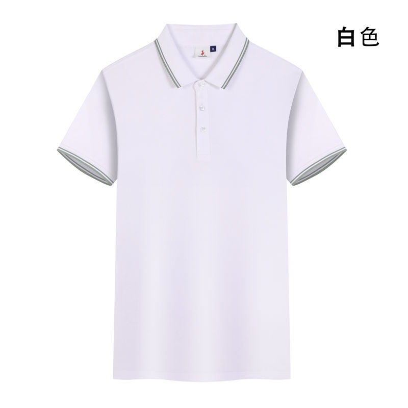 200克蚕丝珍珠棉白色双条纹短袖POLO衫GJ22-V6