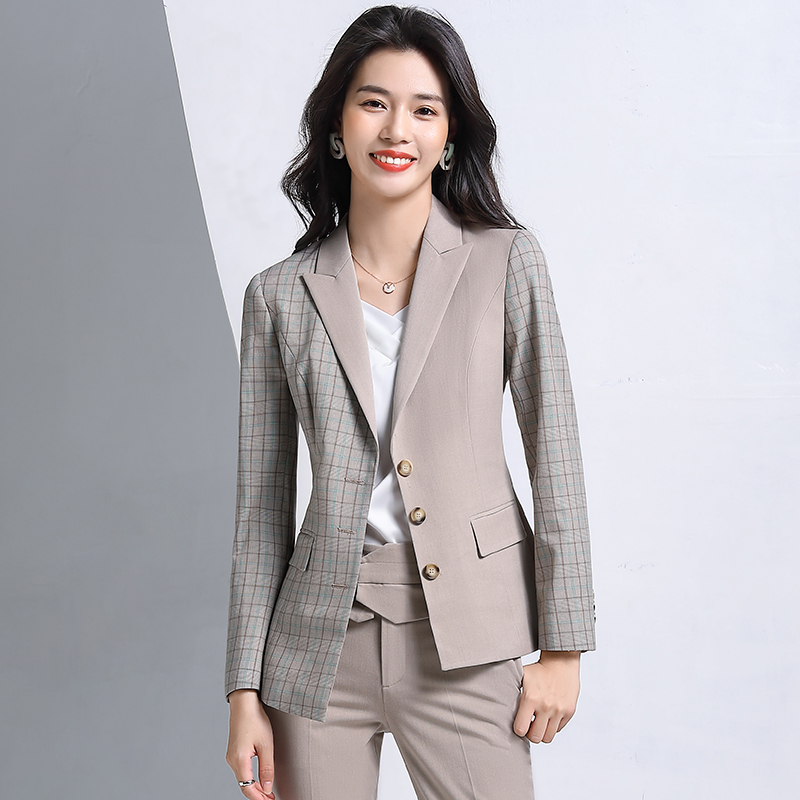 休闲格子拉接小西服外套188-6228-2女外套