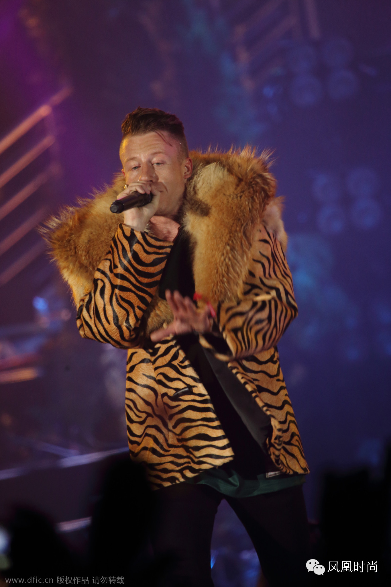 座山雕的皮草较为华丽,为了衬托角色,座山雕的皮草在版型和色彩上面更加的大胆。这种较为夸张的皮草穿法在男星中间也不难发现。