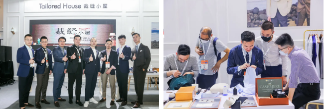 2020年7月上海展现场,以“传承匠心”为主题,戚柏军老师及其亲传徒弟在现场为大家展示西服的教学过程(量体、裁剪、缝纫、制版等服装主要步骤),分享西服制作技艺,引来一片好声音。
