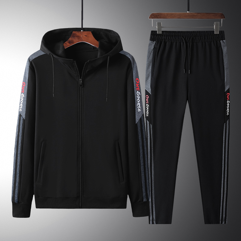春秋季新款宽松休闲运动连帽卫衣开衫两件套装男款KM-XD-215