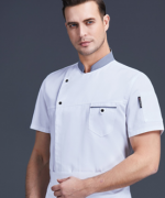 涤棉灰领两扣酒店厨师服短袖上衣YLYS-2020-15