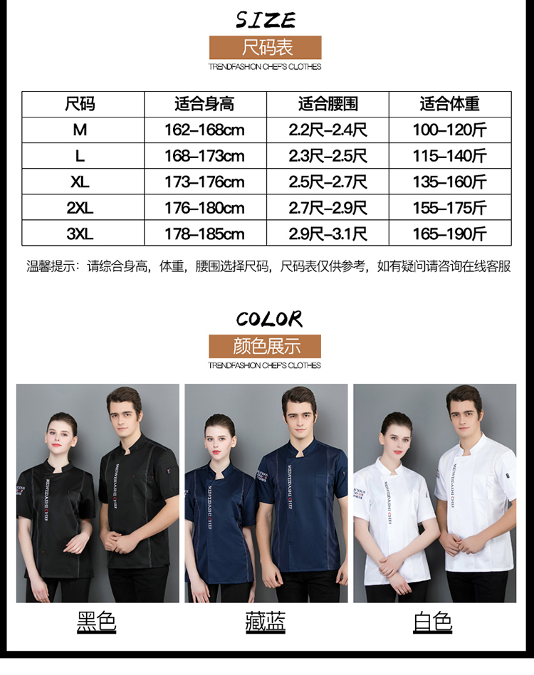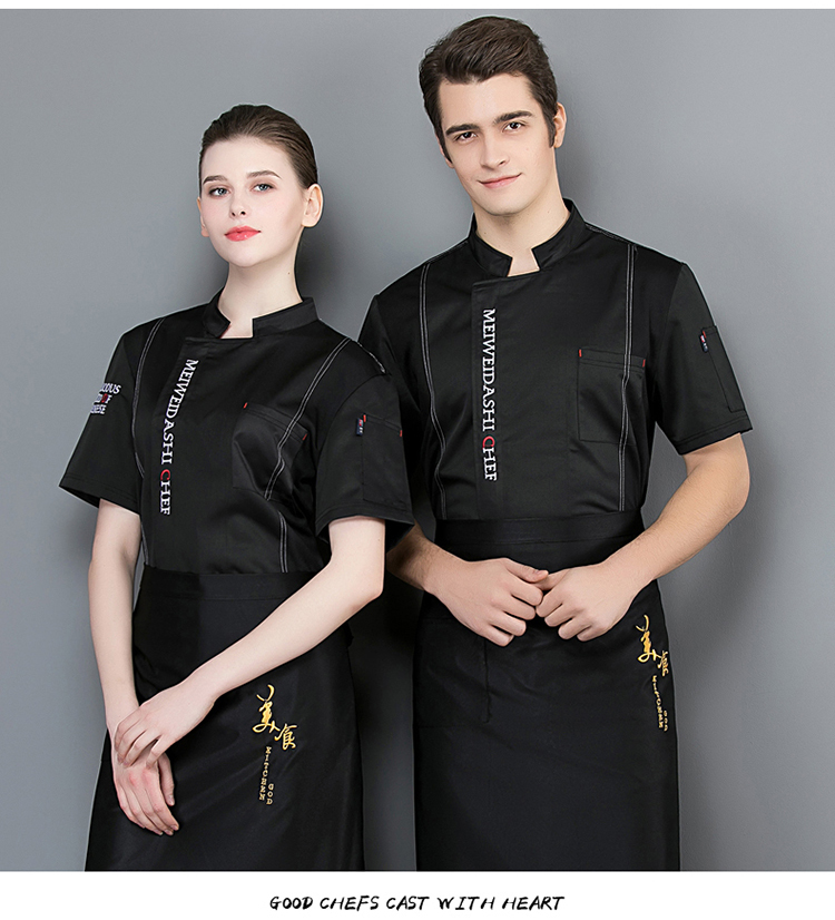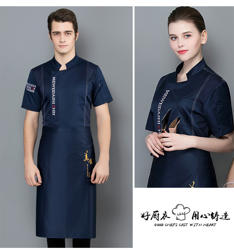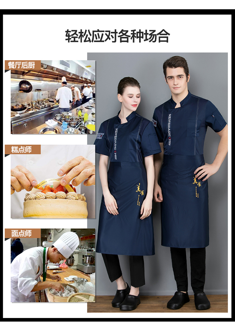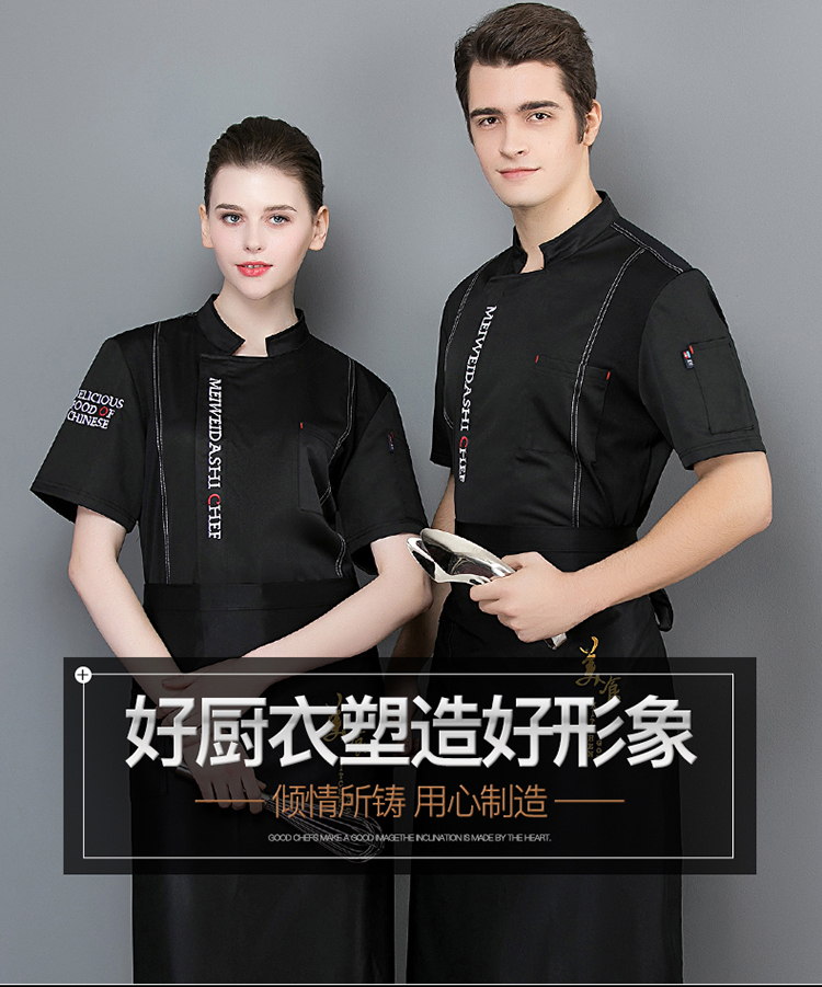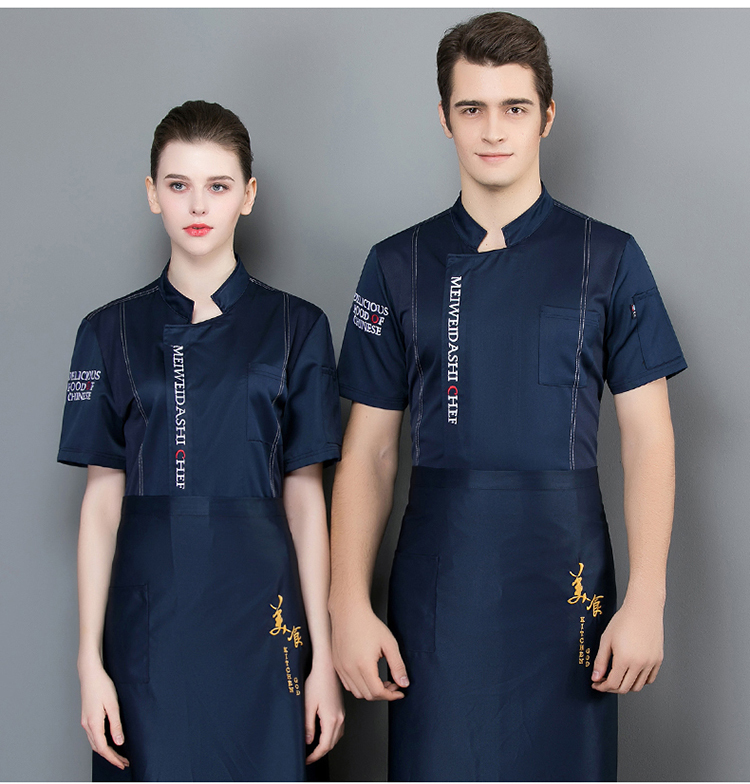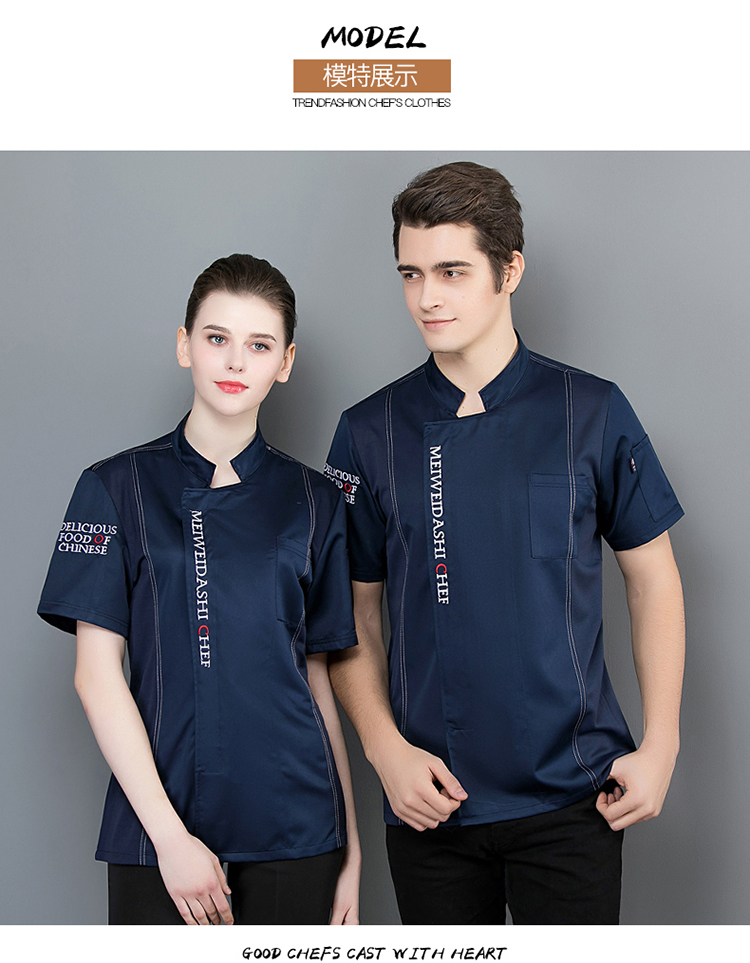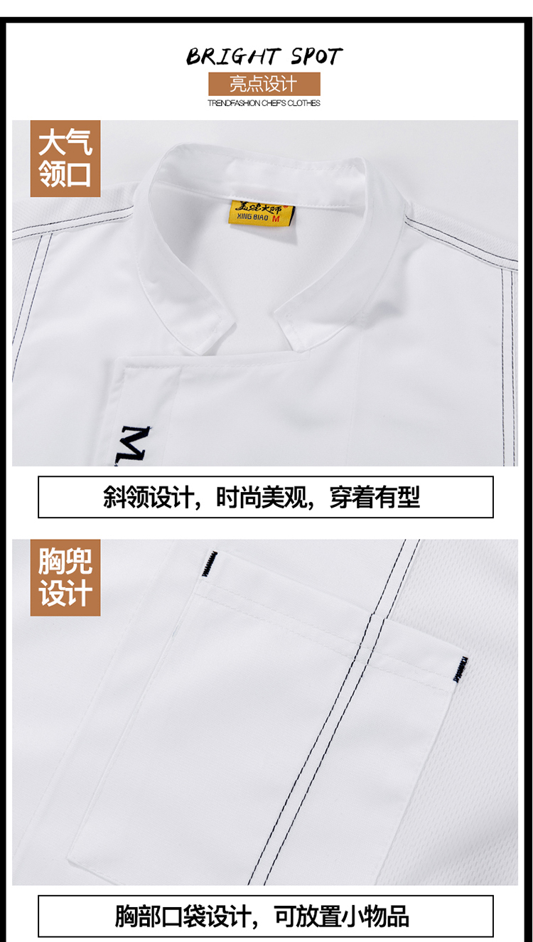 餐饮厨房后厨短袖厨师服拼领98-C0201015