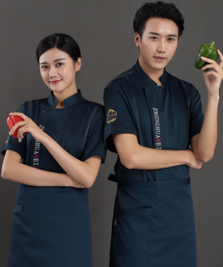 餐饮厨房后厨短袖厨师服拼领98-C0201015