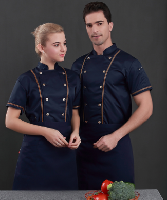 餐饮厨房后厨精仿呢短袖厨师服双条98-C0201023