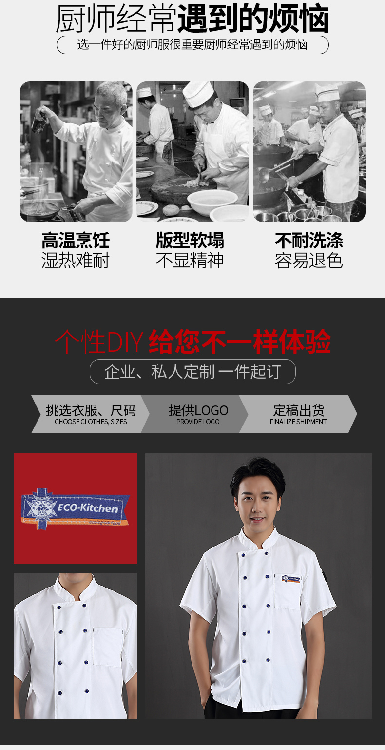 西餐厅中餐厅酒店餐饮厨房后厨厨师长短袖厨师服上衣古斯特HY-C0201037