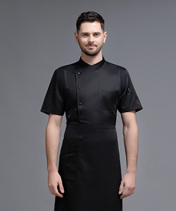 纯色单排酒店餐厅厨师服短袖上衣98-L003