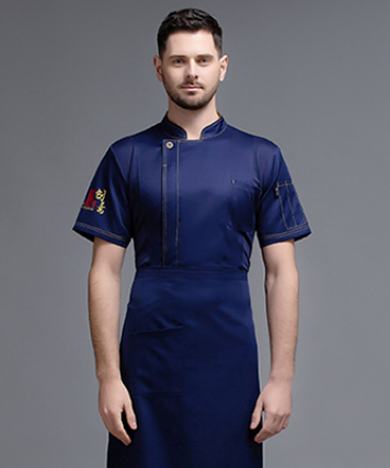 餐饮厨房后厨短袖厨师服拼领98-C0201015