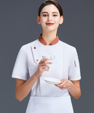 涤棉铜扣拼领酒店厨师服短袖上衣YLYS-2020-31