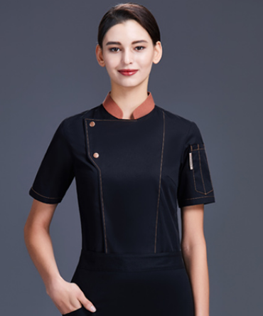 涤棉铜扣拼领酒店厨师服短袖上衣YLYS-2020-31