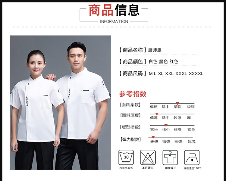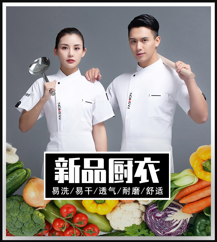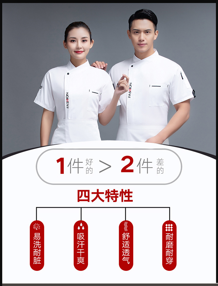 字母门襟酒店餐厅厨师服短袖上衣98-L026