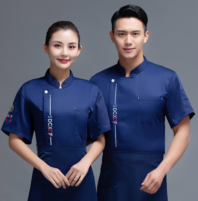 餐饮厨房后厨短袖厨师服拼领98-C0201015