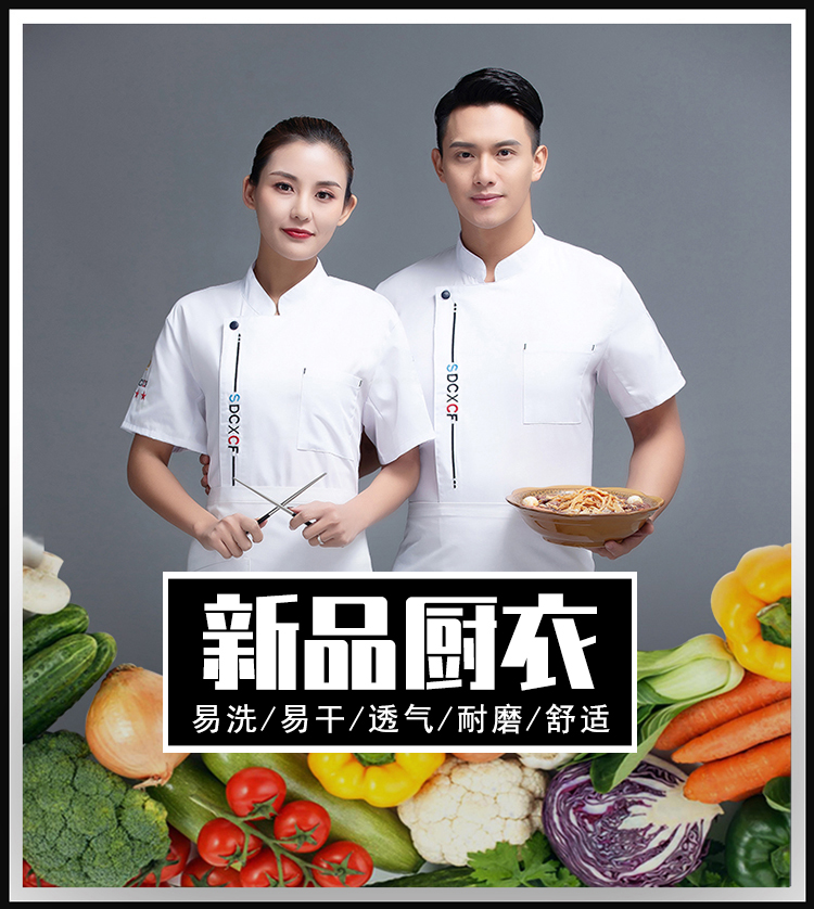 餐饮厨房后厨大龙短袖厨师服大龙98-C0201033