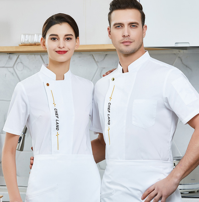 涤棉金扣字母厨师服短袖上衣YLYS-2020-28
