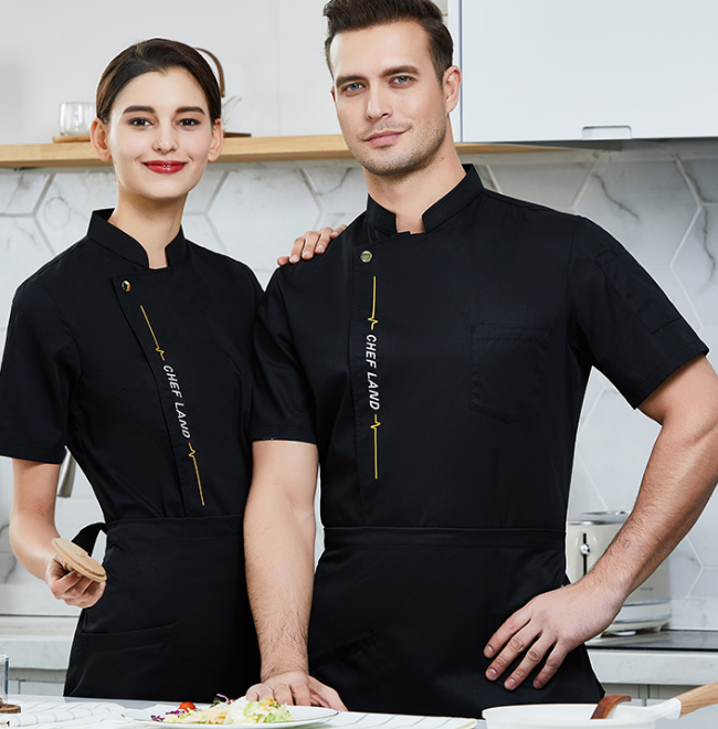涤棉金扣字母厨师服短袖上衣YLYS-2020-28