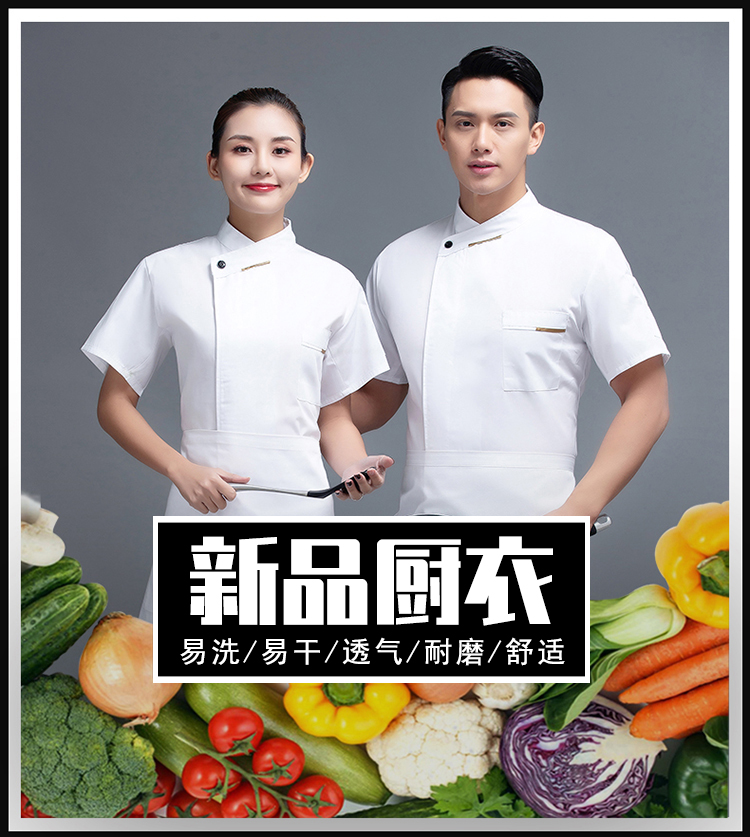 一字兜酒店餐厅厨师服短袖上衣98-L024