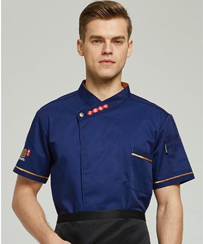 餐饮厨房后厨短袖厨师服拼领98-C0201015