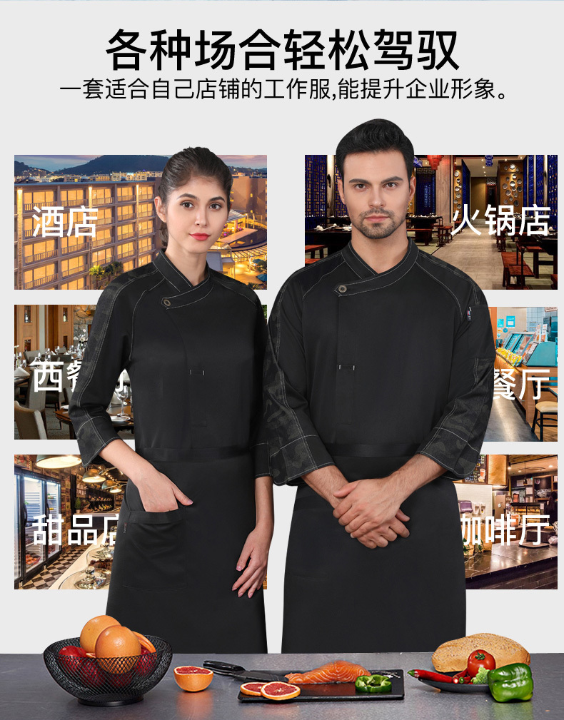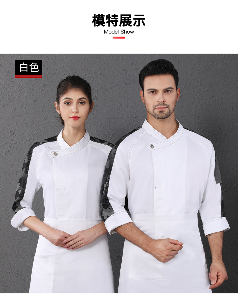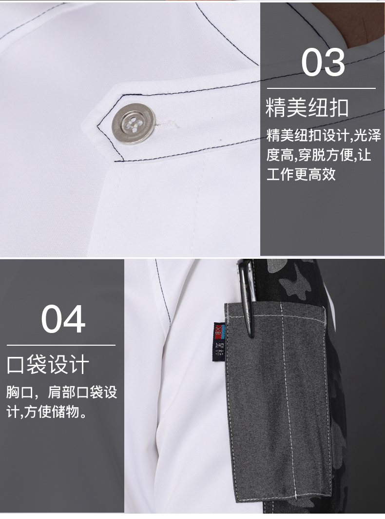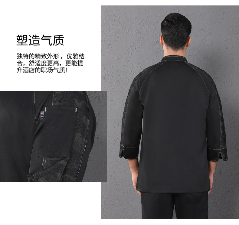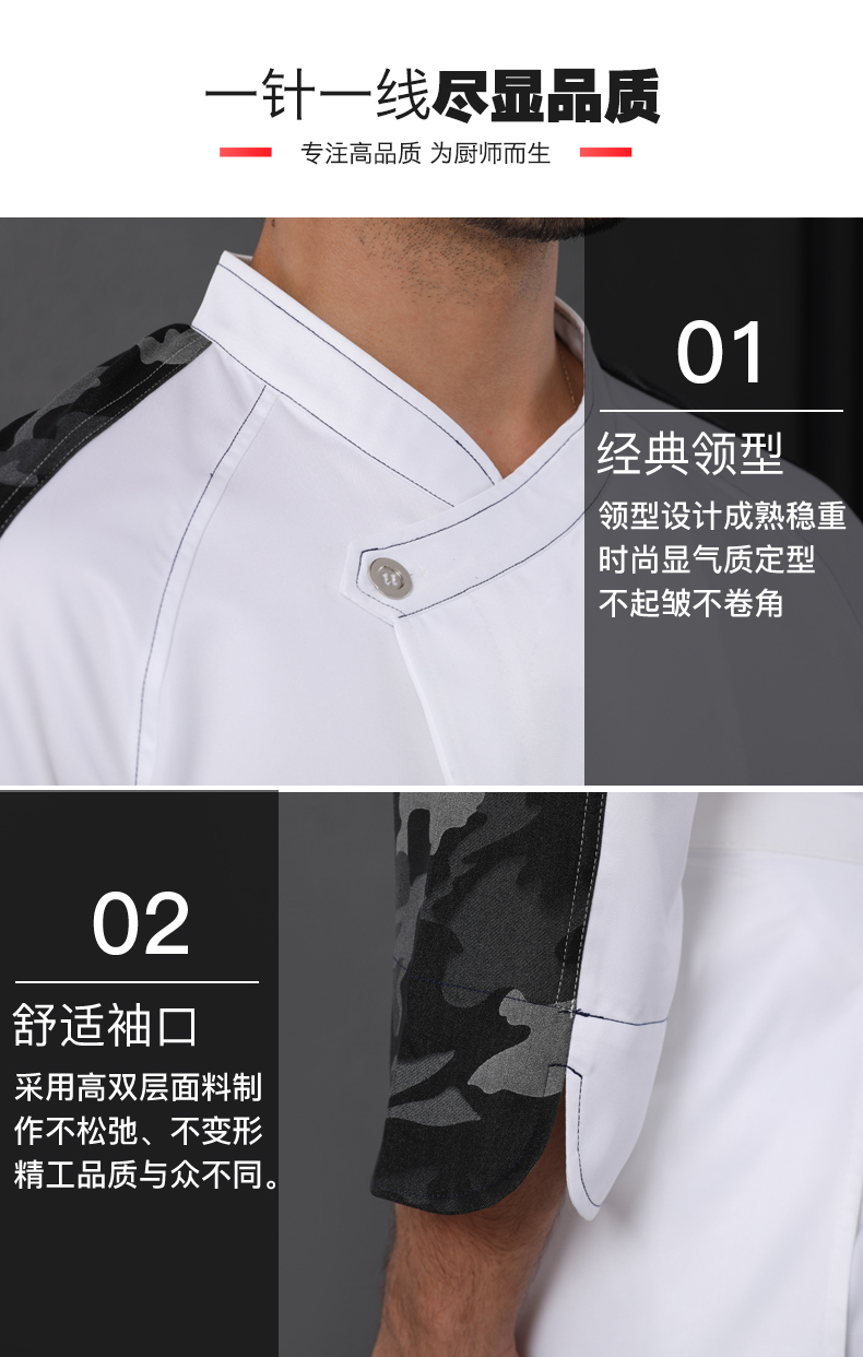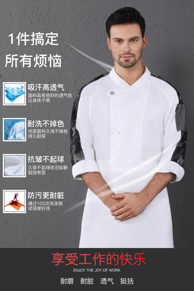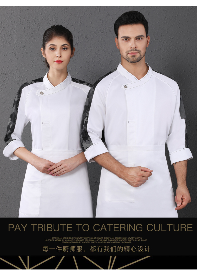 西餐厅中餐厅酒店餐饮厨房后厨厨师长厨师服拼肩迷彩上衣98-C0202008