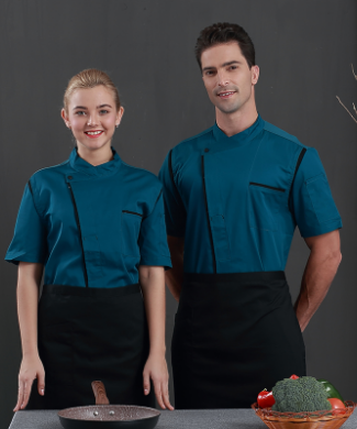 餐饮厨房后厨短袖厨师服拼领98-C0201015