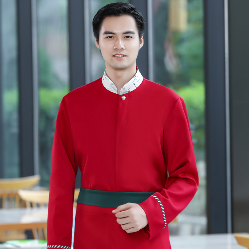 兰花草服务员工作服长袖上衣+围裙男款H19-001-004男